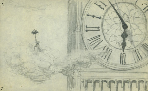 Disney Studio Artist, Mary Poppins on a cloud storyboard drawing, Mary Poppins (1964); collection of the Walt Disney Family Foundation; © Disney