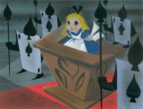 • Visual development art - Alice in the witness box - Alice in Wonderland (1951), c. 1950; collection of the Walt Disney Family Foundation; © Disney