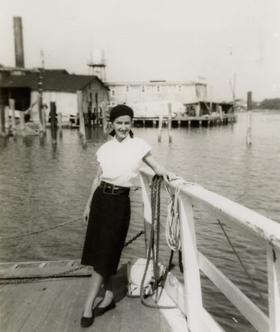 • Photograph - Mary Blair on dock; collection of the Walt Disney Family Foundation, gift of Jeanne Chamberlain and Maggie Richardson