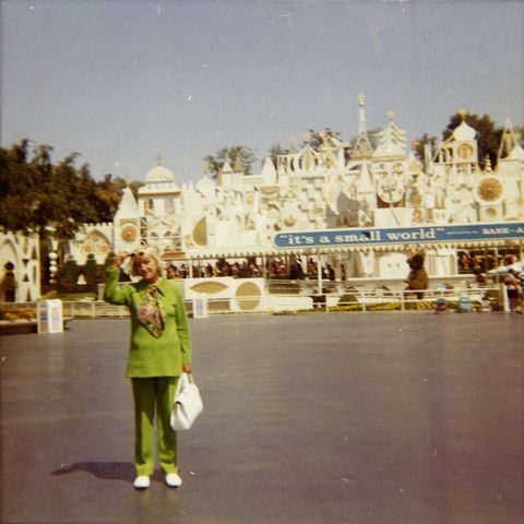 • Photograph - Mary Blair in front of "it's a small world", c. 1966; collection of the Walt Disney Family Foundation, gift of Jeanne Chamberlain and Maggie Richardson; "it's a small world" used by permission from Disney Enterprises, Inc.
