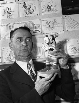 “As early as 1923, I was doing song films. I seldom thought out our silent product without some musical complement. I used to talk to the organist in the theater on arrangements before a film was shown. I even had a gadget that insured a crude kind of synchronization between the organ music and the picture action. In 1925, I had an animated cat in one of our silents direct the orchestra in the pit from the screen. While this was all preliminary to sound and film, it was preparatory background and equipment for that first Mickey Mouse talkie and the subsequent swift evolvement of sound.