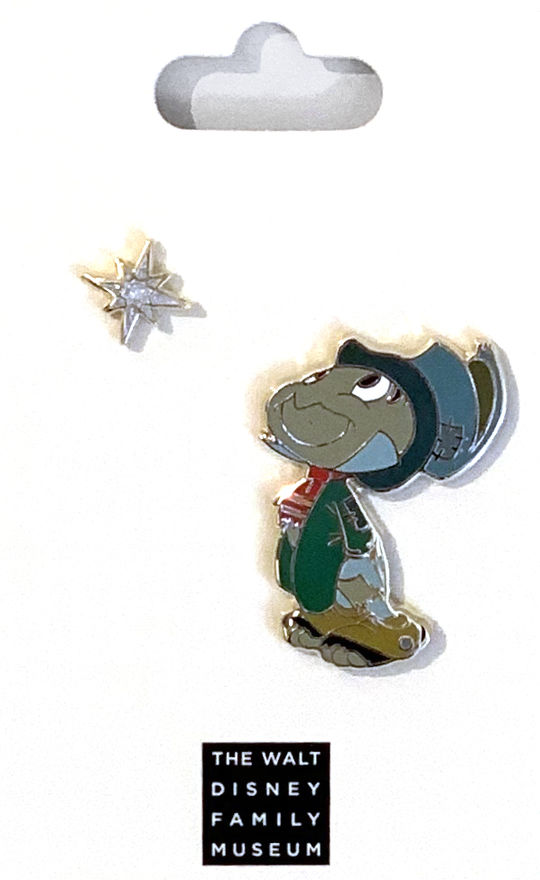 Exclusive to The Walt Disney Family Museum, this two-part pin features Jiminy Cricket staring up at a glittering wishing star, prior to being appointed as Pinocchio's conscience.