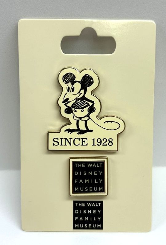 Designed exclusively for The Walt Disney Family Museum. This pin set features a sketch of the earliest known drawing of Mickey Mouse—dated from 1928 and on display in The Walt Disney Family Museum’s galleries—accompanied by the museum’s logo on a cream background. Includes Mickey Mouse head icon pin-back.