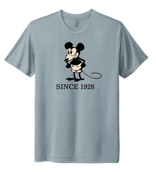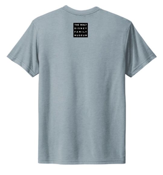 Exclusive design for The Walt Disney Family Museum. This light blue heather t-shirt features the museum’s logo on the upper back and a sketch of the earliest known drawing of Mickey Mouse, dated from 1928 and on display in The Walt Disney Family Museum’s galleries. Also available in true red.