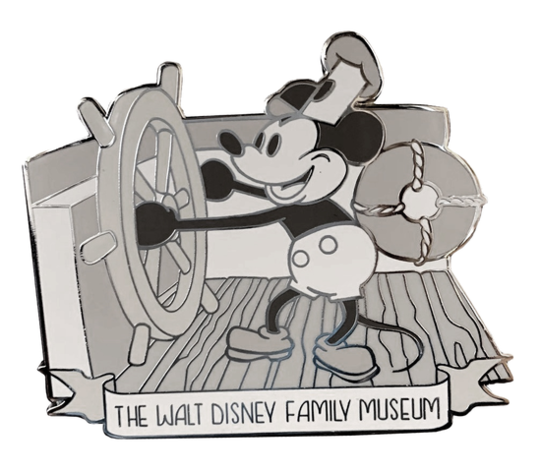 Exclusive to The Walt Disney Family Museum, this enamel magnet features an iconic image from Steamboat Willie in vivid greys to capture the first appearance of Mickey Mouse in 1928.